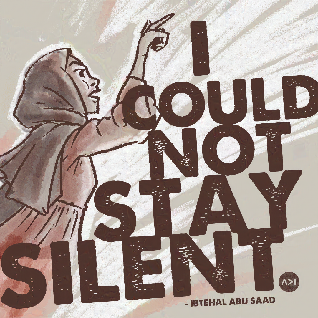 Caricature of Ibtehal Abu Saad protesting Microsoft's complicity in Israel's genocide with the words "I could not stay silent" over it.
